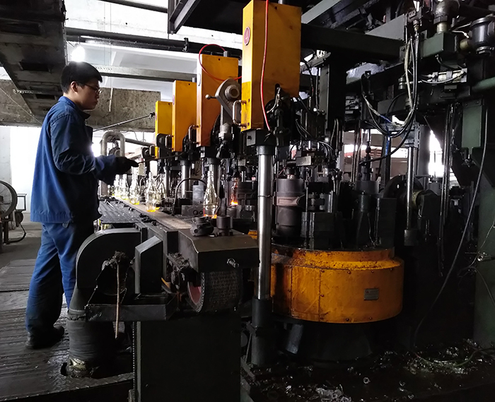 恒通玻璃制品有限公司在2017年12月順利投產且通過驗收,生產不受環保因素的干擾,產品由原來單一的高白料增加至現在的晶白料。行列機由原來的三臺四單一臺六單改為現在的一臺四組8S機、一臺四組9S機、兩臺四單,日產玻璃瓶18萬左右,年產量可達600多萬。